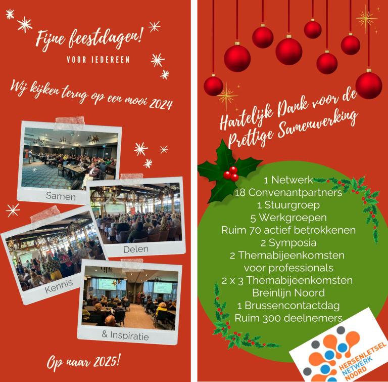 Hersenletsel Netwerk Noord wenst jullie allen fijne feestdagen en een gezond en gelukkig 2025!